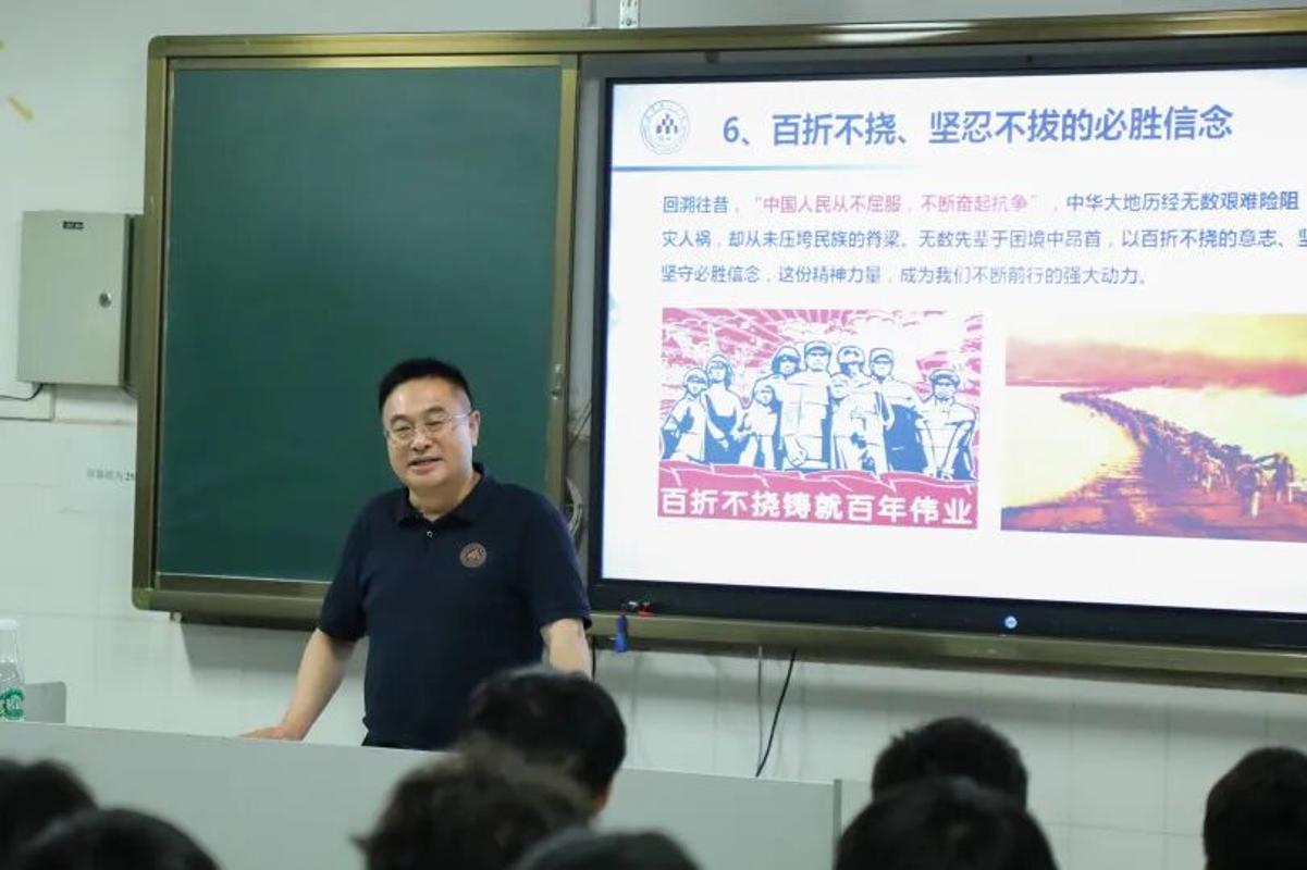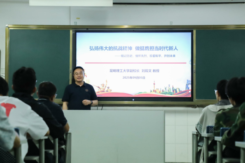 9月5日,校党委常委、副校长刘殿文教授作为矿物加工工程2024级、2025级拔尖创新班班主任,在莲华校区矿业大楼334教室以“弘扬伟大的抗战精神、做挺膺担当时代新人”为题,为两个班的本科生及该专业2025级研究生代表等师生讲授思政课。本次思政课由国土资源工程学院党委副书记李雨健主持,学院学工办主任石玉莲、院团委书记倪玉婷、矿加系副主任王飞旺、王梦涛、矿加(拔尖)241班主任刘丹、矿加(拔尖)253班主任先永骏及辅导员朱航等参加学习。