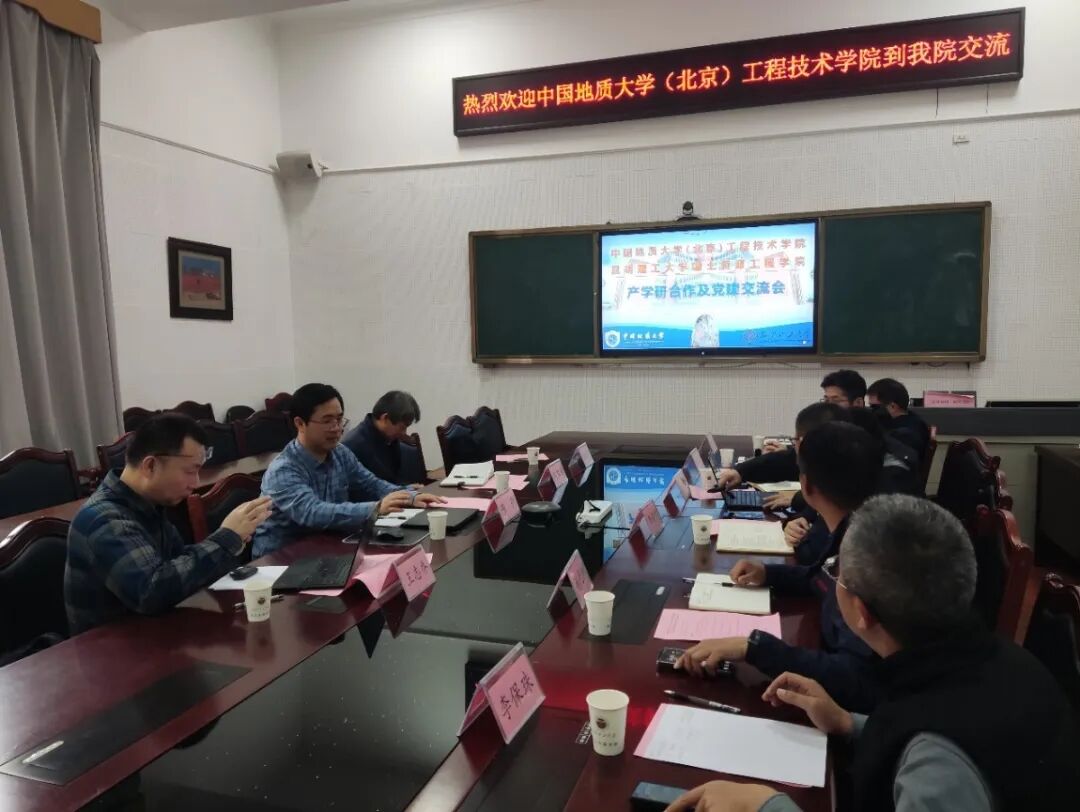 学院党委副书记李雨健首先对工程技术学院一直以来给予学院人才培养、科研合作等方面的支持表示感谢,然后介绍了学院基本情况及党建工作,也期待通过此次的交流座谈活动实现双方“业务共融、携手共进”,共同推动党建工作的不断创新与提升。工程技术学院工程地质系支部书记陈剑介绍了学院基本情况及党建工作,分享了科研、人才培养和党建方面的举措,期待未来能够与学院开展更多实质性和全方位的合作交流,共同推进产学研工作的互学互鉴、党建工作的互融互促。